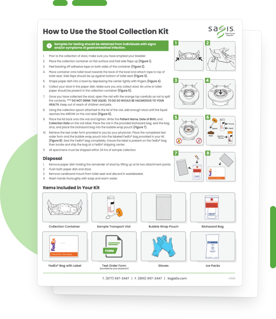 Step-by-step instructions for collecting and mailing stool samples for GI pathogen testing.
