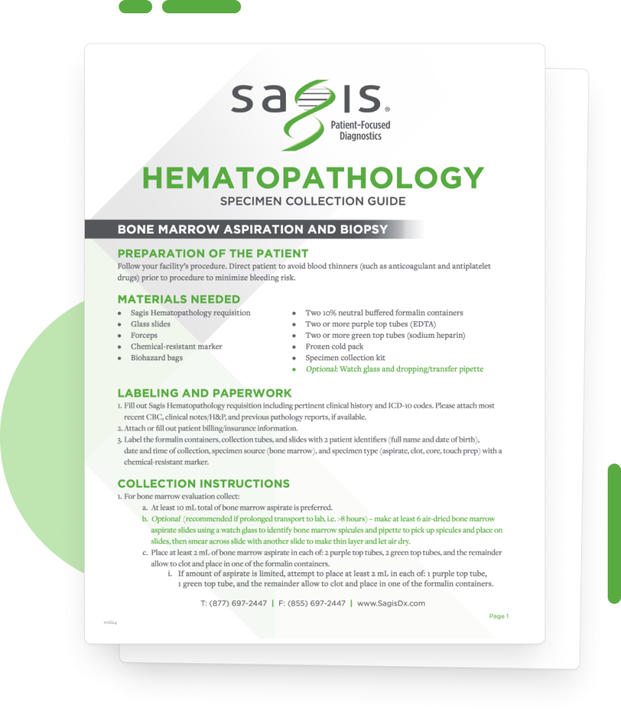 Detailed instructions for collecting bone marrow biopsies and flow cytometry specimens (peripheral blood, tissue, body fluids, fine needle aspirations).